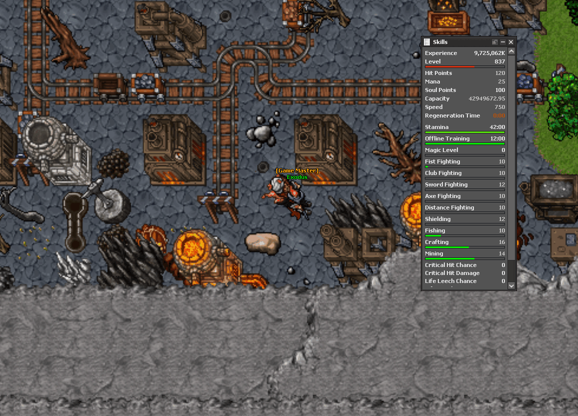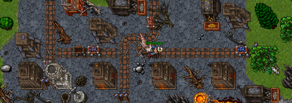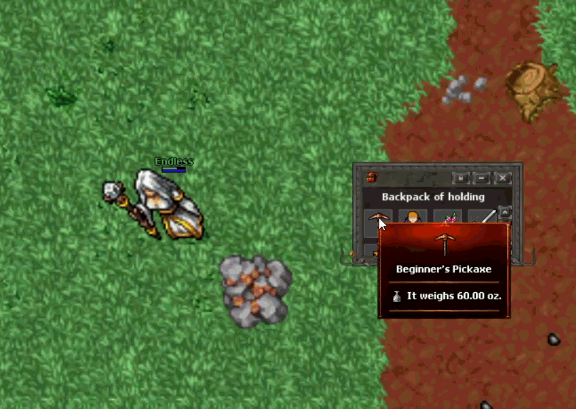 Minner's Forge is located at north of Thais, here you will find npc Elyotrope he sells the first pick for start mining around the world. Bought it, collect pieces , craft small and big ingots and sell it to Elyotrope.