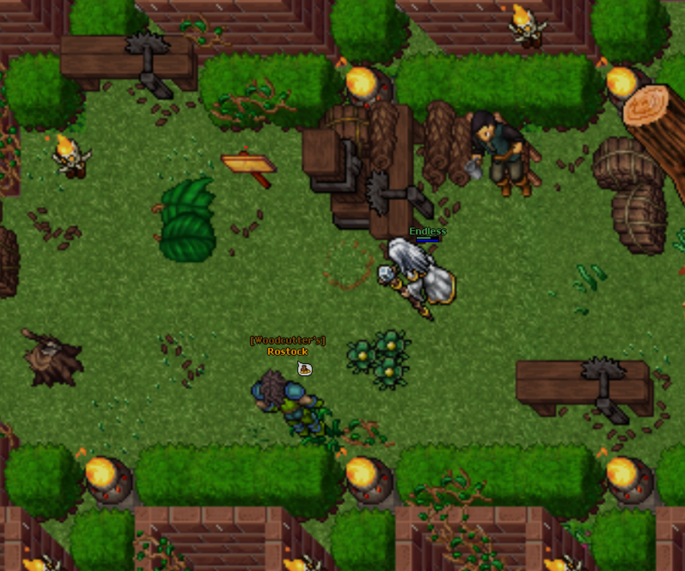 Woodcutting System can be started at north of Thais talking to NPC Rostock bought the beginner's axe and start collecting wood from tree's.